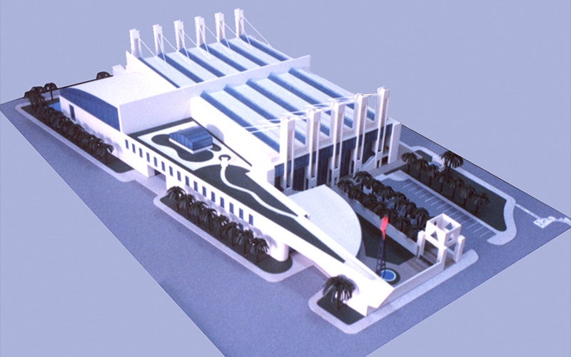 The building consists of two floors, contains many playgrounds, sport halls in addition to the supporting services. The idea of the project is concentrating on the special claddings of the halls and sports playgrounds of wide span and dynamic spaces distribution with provision of a sportive environment using modern technology.