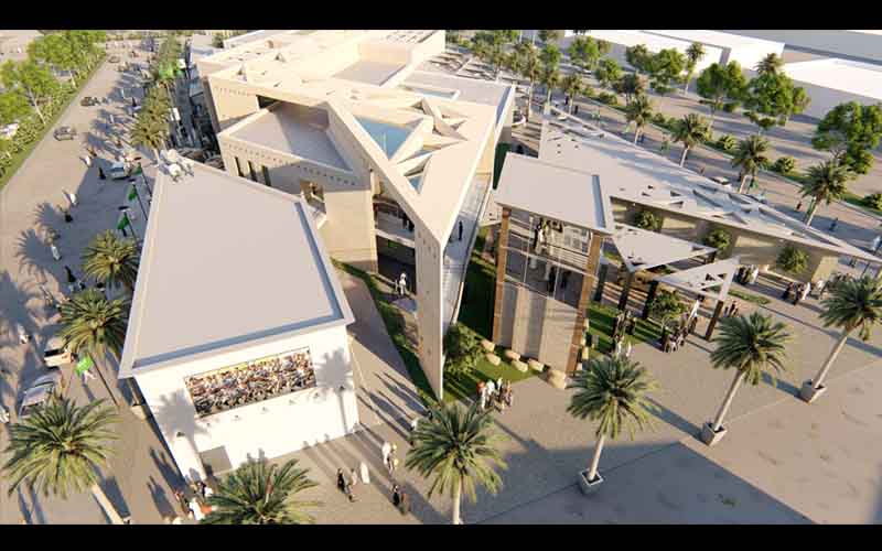 The project was designed of the Presidency of the State Security Exhibition Pavilion at the National Festival for Heritage and Culture in Janadriyah. The idea of the building is inspired by the words of Prince Muhammad bin Salman, The Saudis Strength is like that of the Tuwaiq mountain from the shape of the Tuwaiq Mountains, which represent strength and dominance in achieving the goal of preservation, protection and enhancing confidence.