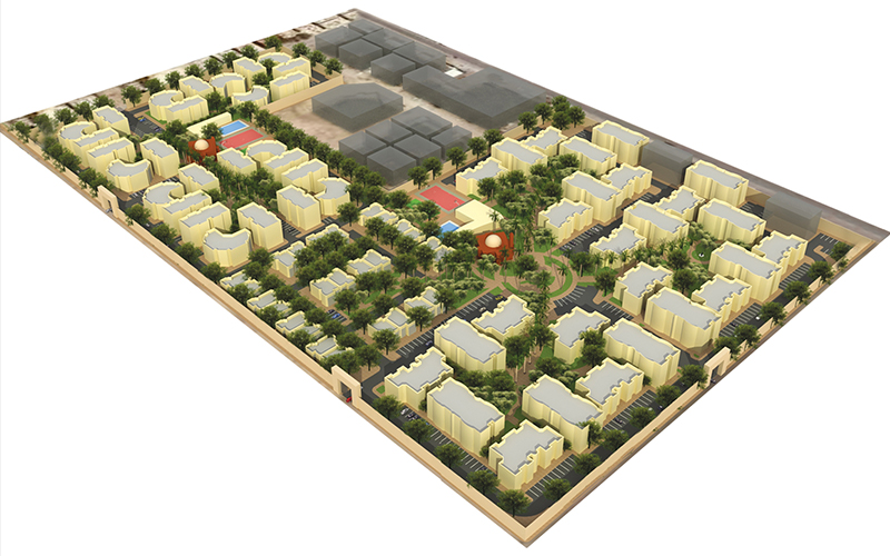 This project of the planning of a residential complex in the second industrial zone in Riyadh reflected an urgent desire to develop the physical environment of industrial areas in the Kingdom through the provision of all the needs of workers in it, including the provision of housing and support services. The project meets the need of the major categories of families and singles through the provision of two areas of integrated services. The project within the Second Industrial Zone in Riyadh is builted on an area of around 10 hectares. Components and elements of the project: Residential units: 3 models of Villas and Buildings for families and two models for singles Buildings