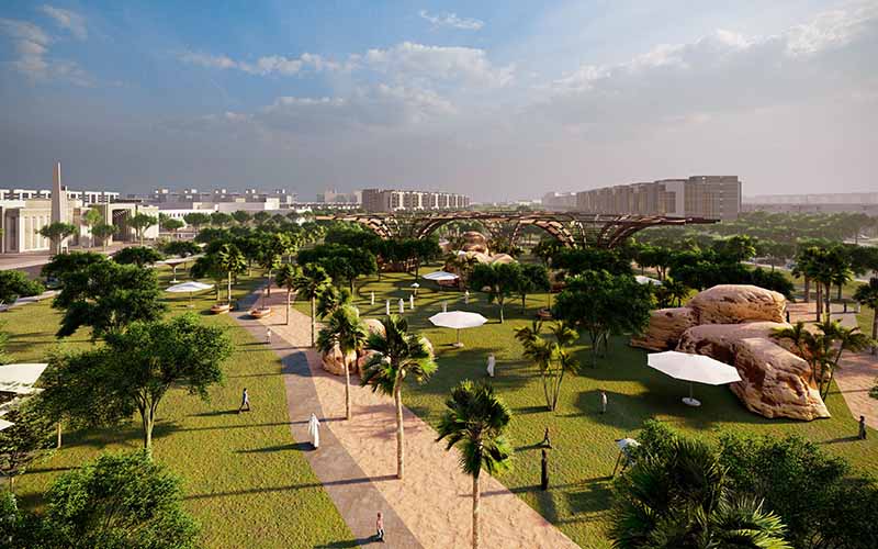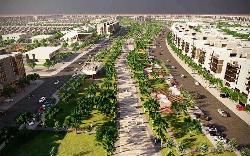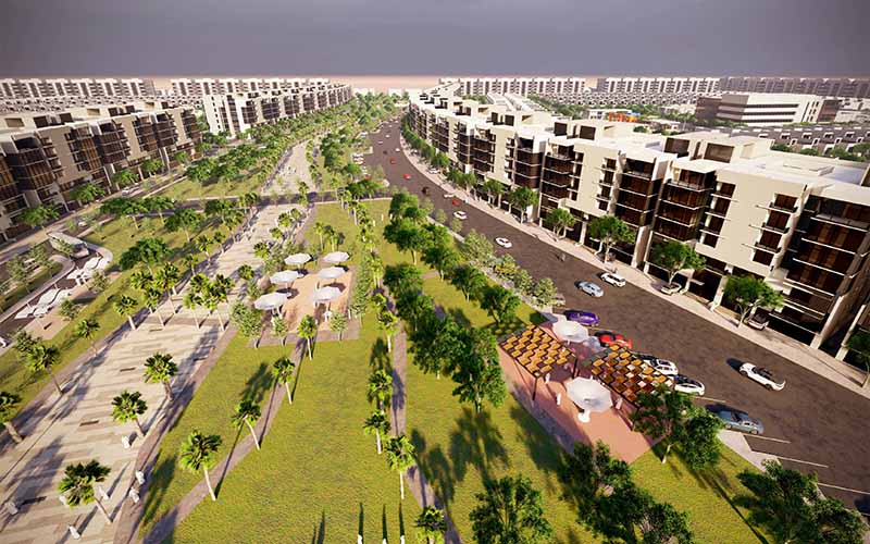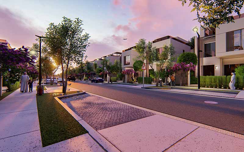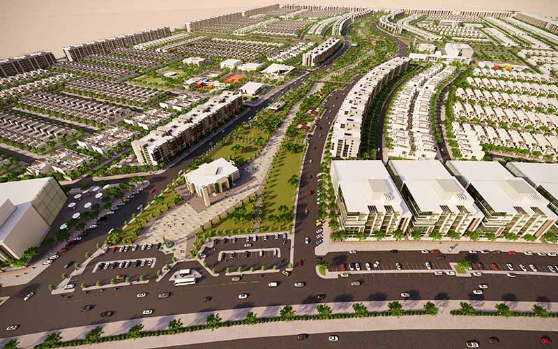 In addition, the sketches illustrate the initial planning idea, the initial design considerations necessary in planning the directions of the road network design mechanism, taking into account the hierarchical hierarchy of the streets, the design of the network of pedestrian corridors, and the distribution of green spaces and various services in the project in a balanced, thoughtful and highly efficient manner.